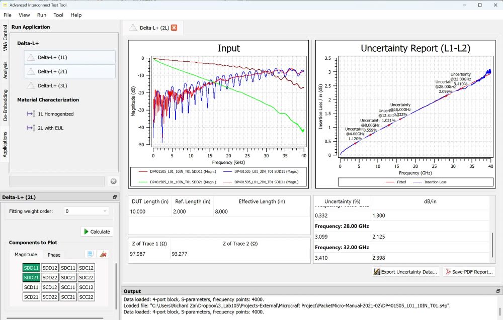 - Differential Measurement: A vector network analyzer (VNA) or similar equipment is used to measure the S-parameters of each trace. The measurements will include the loss from the trace itself, as well as the parasitic losses from the test setup (probes, vias, etc.).